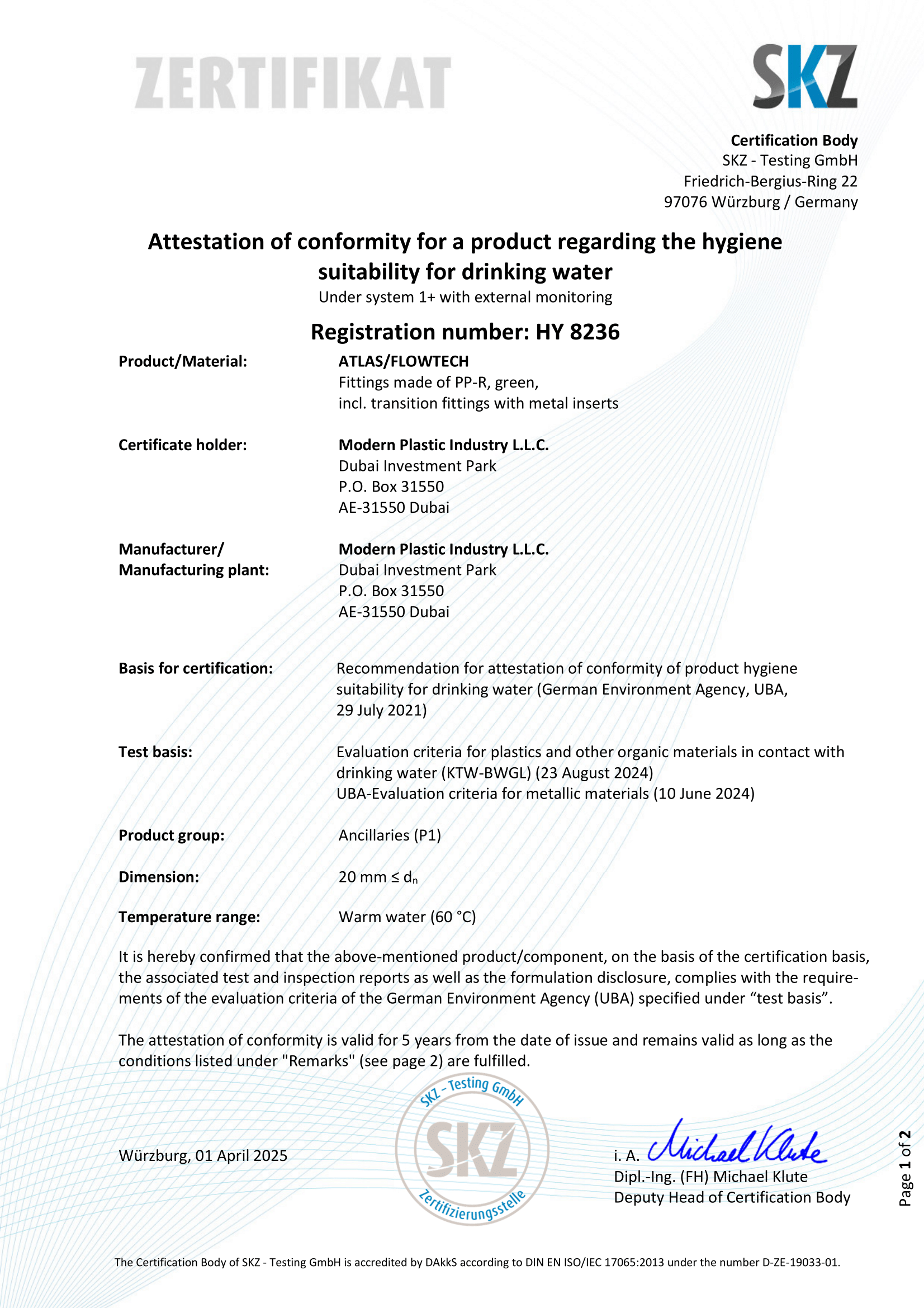 WRAS PRODUCT ‘ATLAS & FLOWTECH’